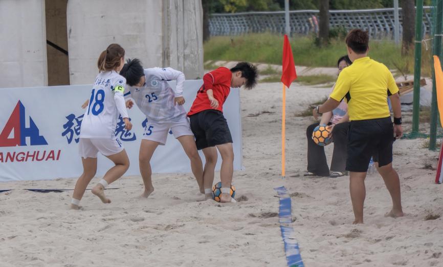 本届赛事汇集了来自全国各地的顶尖大学生女子沙滩足球队,竞争异常激烈。面对全新的比赛环境和高强度的赛程,河海大学女足的姑娘们克服了重重困难。在松软的沙地上,每一次奔跑、每一次起跳都比在常规场地上需要付出更多的体力与精力。然而,队员们将挑战转化为动力,战术执行坚决,攻防转换流畅。无论是精准的传球、有力的射门,还是门将一次次精彩的扑救,都赢得了现场观众与对手的尊重与喝彩。她们在小组赛中遇到具有丰富经验的成都大学,以及上届四强复旦大学,敢打敢拼,成功突围;在淘汰赛阶段,面对实力强劲的冠军队伍沈阳理工大学,全队上下团结一心,每一场比赛都全力以赴,直至最后一刻也未曾放弃,最终战胜上海海事大学将全国第七名的荣誉收入囊中。