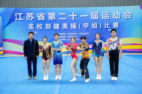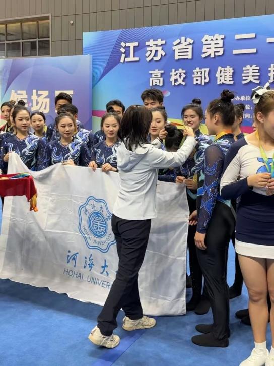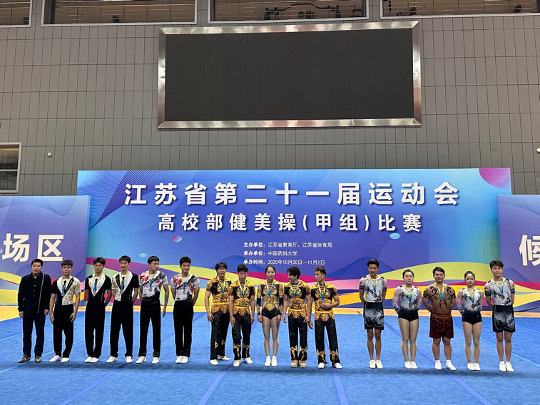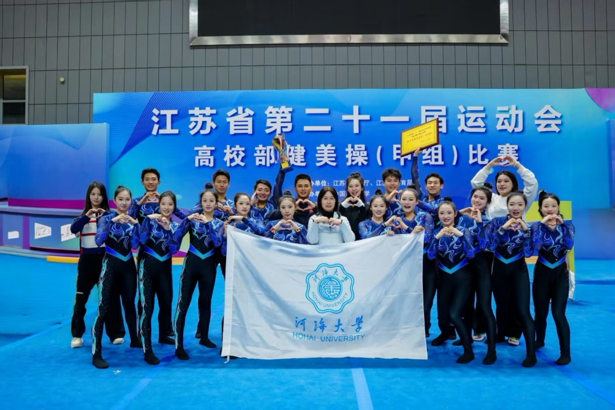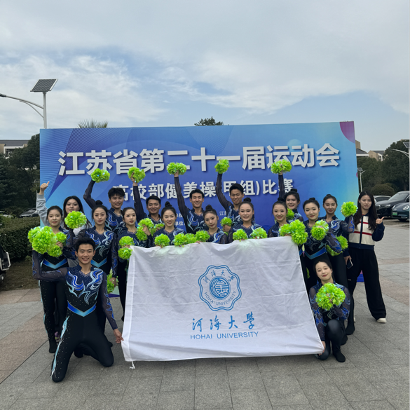 金秋送爽,捷报频传。10月30日至11月2日,江苏省第二十一届高校部运动会(甲组)在中国药科大学隆重开赛。河海大学体育系16名啦啦操队队员出战(2023级本科生袁鹰、刘佳嘉、林奕航、周天宇、何谷涵、刘纳川;2024级本科生王紫琳、唐璨、庞宇欣;2025级本科生万婧怡、林嘉琪、李雪纳、崔潘婕、陆思桦、尤好;2025级研究生徐锟涛),在竞技健美操与啦啦操专项赛场之上奋勇争先、大放异彩,以精湛技艺与昂扬姿态征服全场,最终斩获1金3银1铜的亮眼战绩,用实力书写河海体育的荣光篇章。