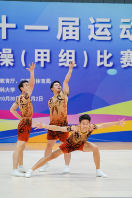 周天宇、林奕航、徐锟涛三位选手强强联合,以整齐划一的动作、气势如虹的姿态惊艳亮相。他们步伐协调一致,力量传递连贯流畅,每一个造型都凝聚着无数次训练的汗水,每一段编排都彰显着团队的智慧,用协作铸就荣光。