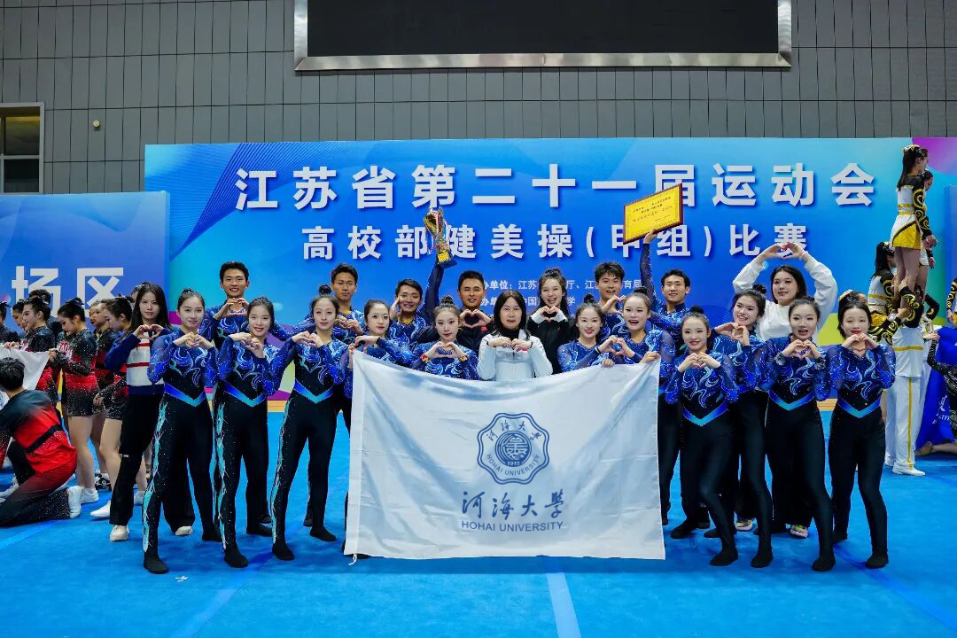 10月30日至11月2日,由江苏省教育厅、江苏省体育局主办的江苏省第二十一届运动会高校部健美操(甲组)比赛在中国药科大学开赛。河海大学啦啦操队凭借出色的表现和精湛的技艺,最终斩获1项冠军、3项亚军、1项季军、团体总分第三的优异成绩,并荣获“体育道德风尚奖”运动队,充分展现了河海学子的青春风采与竞技水平。
